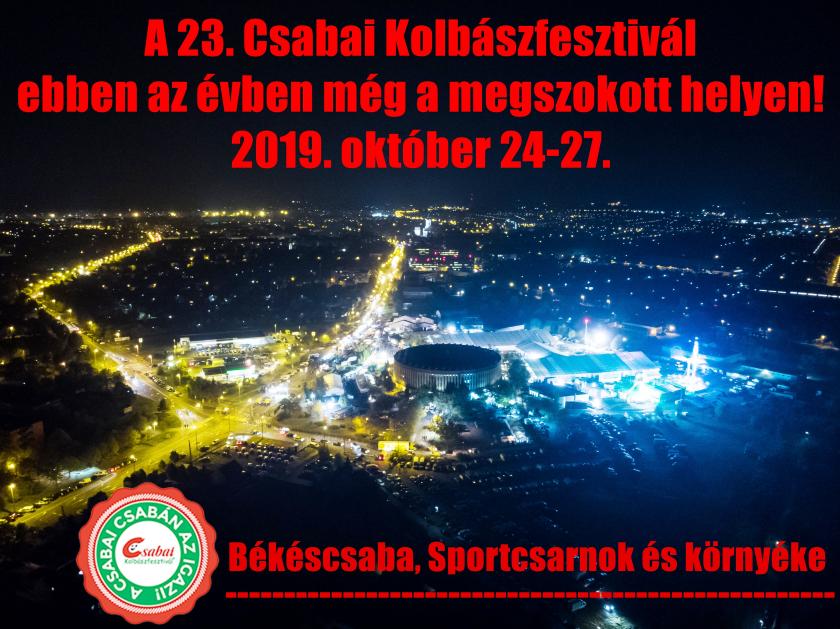EBBEN AZ ÉVBEN MÉG A MEGSZOKOTT HELYEN lesz a 23. Csabai Kolbászfesztivál További információk: 2019.07.09. Vissza